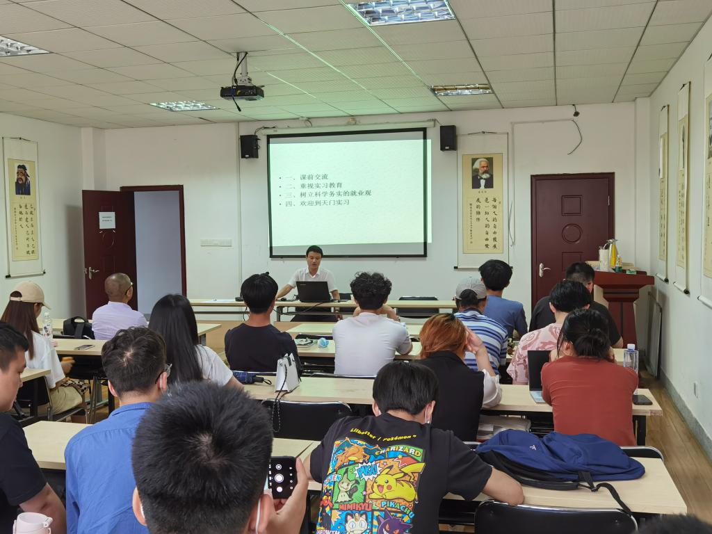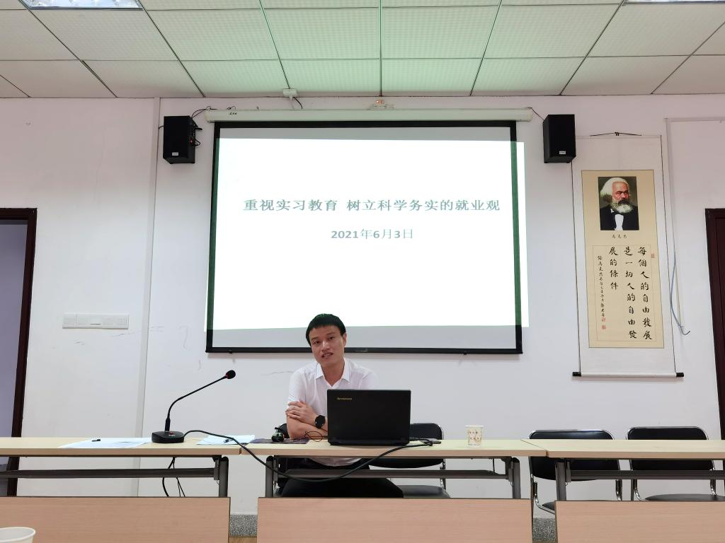 为了指导同学们做好实习前的各项准备,确保实习工作顺利开展,2021年6月3日16:00,太阳成集团tyc234cc主页在逸夫人文楼D2008会议室举行了毕业实习动员大会。2002级优秀员工、现任天门供销社主任的王雄伟学长受邀为大家作了题为“重视实习教育,树立科学务实就业观”的报告,本次动员会由太阳成集团tyc234cc主页副经理徐弢主持,2018级全体本科生参加会议。