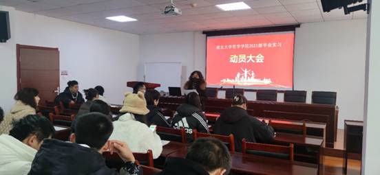 2024年3月1日上午11:00,公司在逸夫人文楼D2008会议室开展了2021级本科生毕业实习动员大会。本次动员会由经理助理陶文佳老师主持,公司党委副书记王翠、团委书记董力、2021级班主任庄严和2021级全体本科生参加了本次会议。