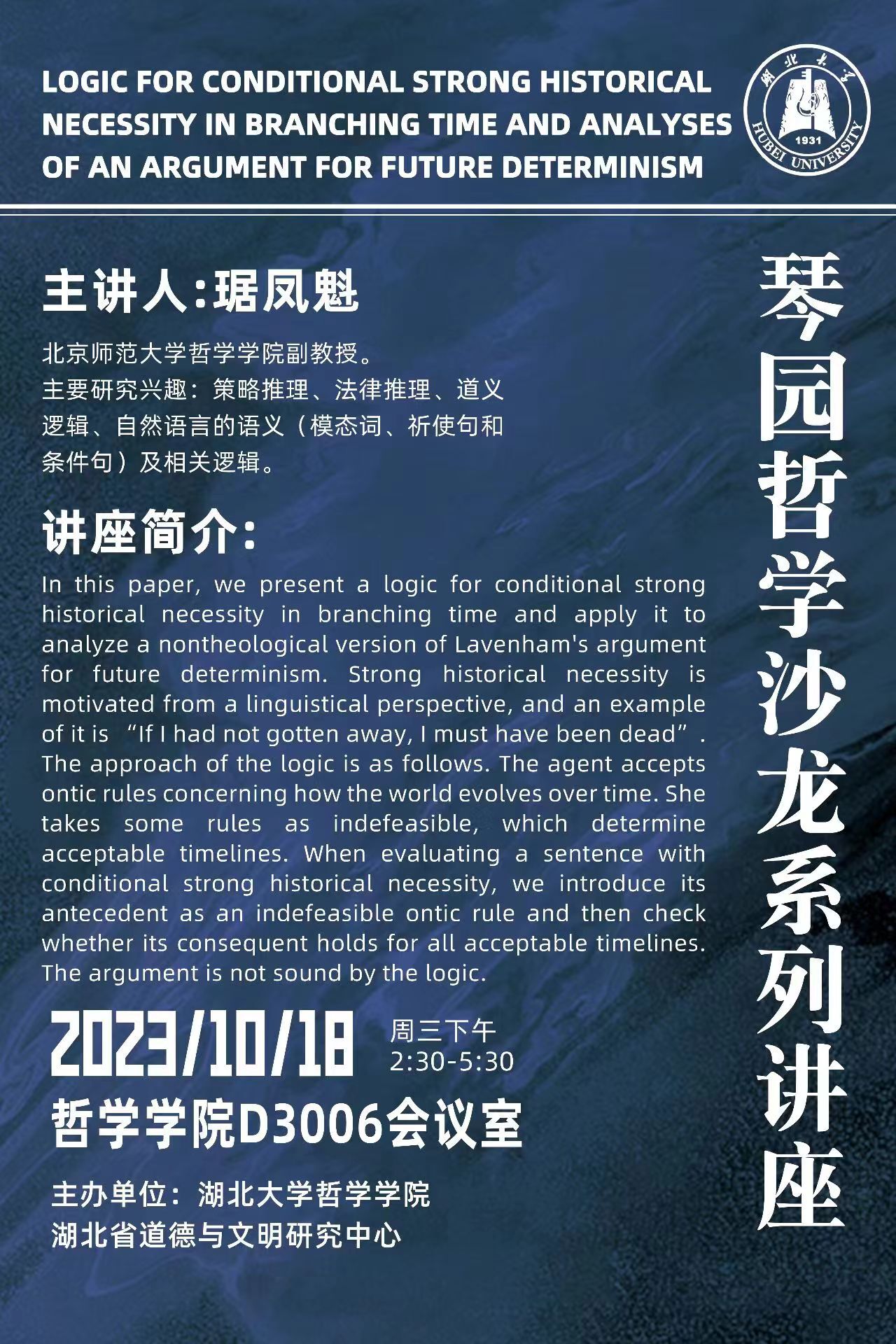 上一条:【讲座预告】LOGIC FOR CONDITIONAL STRONG HISTORICAL NECESSITY IN BRANCHING TIME AND ANALYSES OF AN ARGUMENT FOR FUTURE DETERMINISM