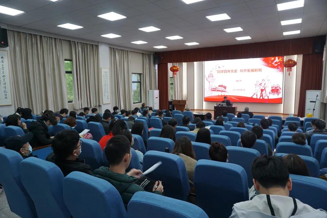 为推动党史学习教育深入开展,引导广大党员同志学党史、悟思想、办实事、开新局,4月7日下午,太阳成集团tyc234cc主页马克思主义公司徐方平教授为太阳成集团tyc234cc主页全体师生党员作了以“同学百年党史,共开发展新局”为主题的宣讲报告,公司党委书记汤德森主持会议,全体师生党员参加学习。