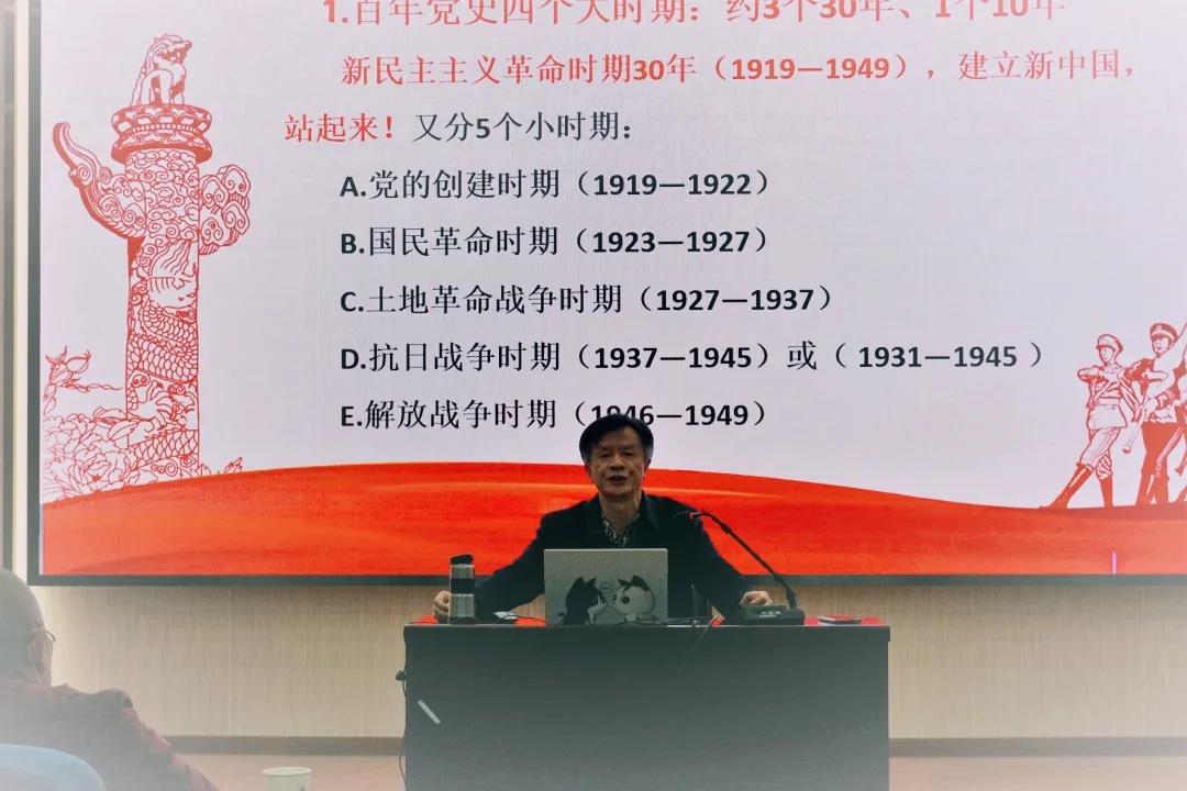 报告会上,徐方平教授围绕学习贯彻习近平总书记关于党史学习的重要讲话精神,提出以“百年建党”和学习“习近平论党史”为契机,掀起学习党史的新高潮。他通过详实的史料、生动的例证,回顾了百年党史的四个大时期,介绍了党的主要领导人关于学习党史的经验重要性,阐述了开展党史学习教育的重大意义和目的。