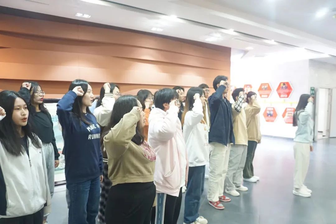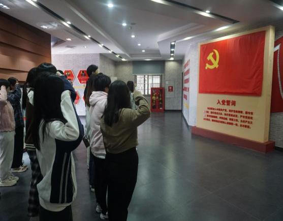 上午,众人到达姚家山红色革命教育基地,跟随党史讲解员的步伐进入了新四军第五师历史陈列馆。面对鲜红的党旗,由各党支部书记领誓,党员同志们一起重温入党誓词,庄严宣誓。
