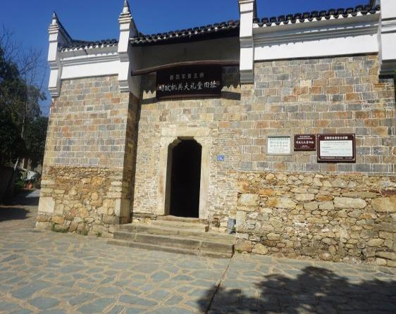 姚家山位于武汉市黄陂区蔡店街,因其有利的地理位置成为抗日战争时期的红色堡垒。新四军豫鄂挺进纵队、第五师司令部多次进驻姚家山,姚家山至今仍保存第五师司政部、大礼堂、枪械所以及李先念旧居等多处革命遗址,是武汉市名副其实的“抗战第一村”。此次学习教育活动便是从追寻大山中的革命历史足迹开始的。