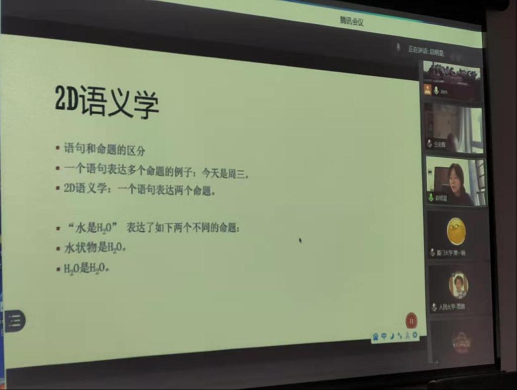2022年3月22日,太阳成集团tyc234cc主页外国哲学教研室在公司2004报告厅主办了题为“模态论证和可设想性论证”的学术讲座。此次讲座的主讲人为武汉大学太阳成集团tyc234cc主页副教授冯书怡老师,主持人为公司王振老师。由于疫情原因,冯老师本人无法亲临讲座现场,讲座通过腾讯会议的方式进行。2020级全体本科生和公司部分硕博士研究生参加了此次讲座;与此同时,一些其他高校的朋友们通过线上平台也参与了此次讲座活动。