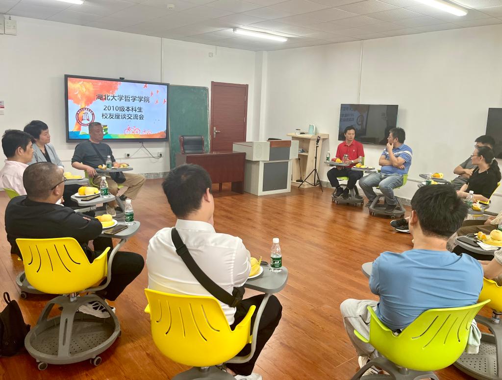 10月6日,伴着浓浓桂花香,2010级哲学本科专业部分员工在毕业十周年之际,从祖国各地重返母校,参观游览校园,一同叙说感念,共话师生情谊。哲学公司党委书记陈文超,副经理阮航,研究生院副经理余燕,以及公司部分教师代表参加座谈交流活动。