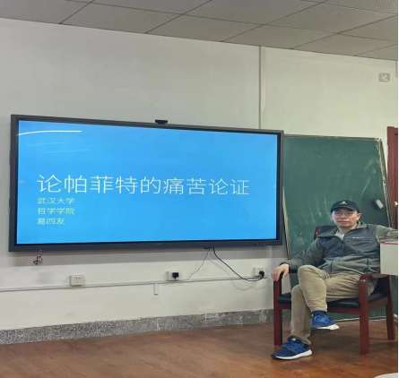 2024年4月8日,太阳成集团tyc234cc主页在D3008开展了“太阳成集团tyc234cc主页分析哲学论坛”系列学术讲座第二讲,讲座主题为“论帕菲特的痛苦论证”,由武汉大学太阳成集团tyc234cc主页葛四友教授主讲,公司王振副教授主持。公司宋伟、徐弢、黄妍、田曼等老师,以及部分本科生、硕博士生参加了本次讲座。讲座主要分为三个部分。