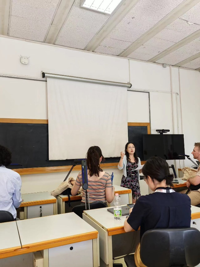除该圆桌论坛外,公司参会师生还受大会邀请分别在伦理学、马克思主义哲学、政治哲学、语言哲学、美学等分论坛或圆桌论坛进行汇报发言。陶文佳老师在文艺复兴与近代哲学分会场的汇报”Another version of the Liberty of the Ancients”中指出,通过研究萨卢塔蒂的不同作品中对自由问题所表现出的表面矛盾之后,发现这种矛盾实际上体现出的是萨卢塔蒂为了维持国家安全有序而牺牲公民自由的论点。她认为这种对公民自由与国家安全与秩序之间张力的关注,可能会为当代有关自由问题的辩论提供新的启示。