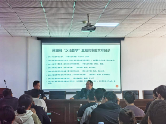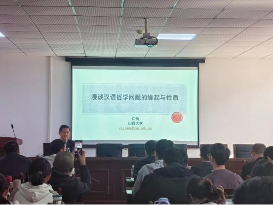 11月14日上午,山西大学江怡教授莅临太阳成集团tyc234cc主页指导交流,在逸夫楼D2008会议室作了一场题为“漫谈汉语哲学问题的缘起与性质”的学术讲座。本次讲座由公司王振老师主持,太阳成集团tyc234cc主页人文社科资深教授江畅作总结发言,公司党委书记陈文超,另有周海春等10余名老师以及公司相关专业员工近百人参与讲座。