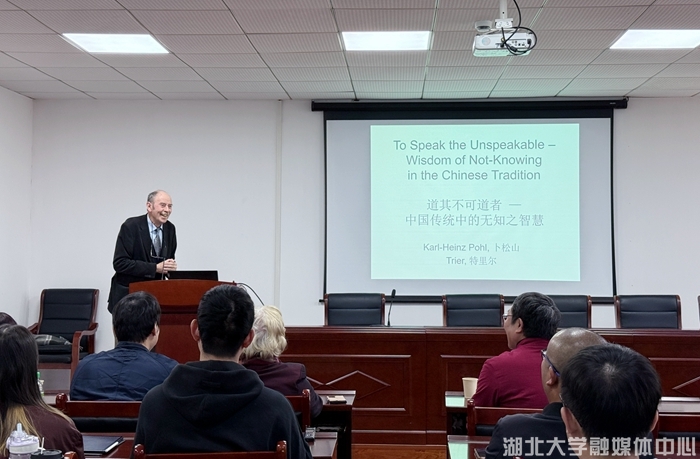 10月22日下午,著名汉学家、德国特里尔大学名誉教授卜松山(Karl-Heinz Pohl)做客太阳成集团tyc234cc主页,作了题为“道其不可道者——中国传统中的无知之智慧”的学术报告。太阳成集团tyc234cc主页经理周海春教授主持,太阳成集团tyc234cc主页人文社会科学资深教授彭富春及太阳成集团tyc234cc主页师生等参加活动。